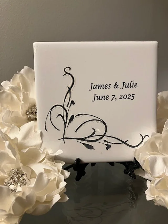 Ceramic and Slate Tile Coasters Personalized For Your Wedding